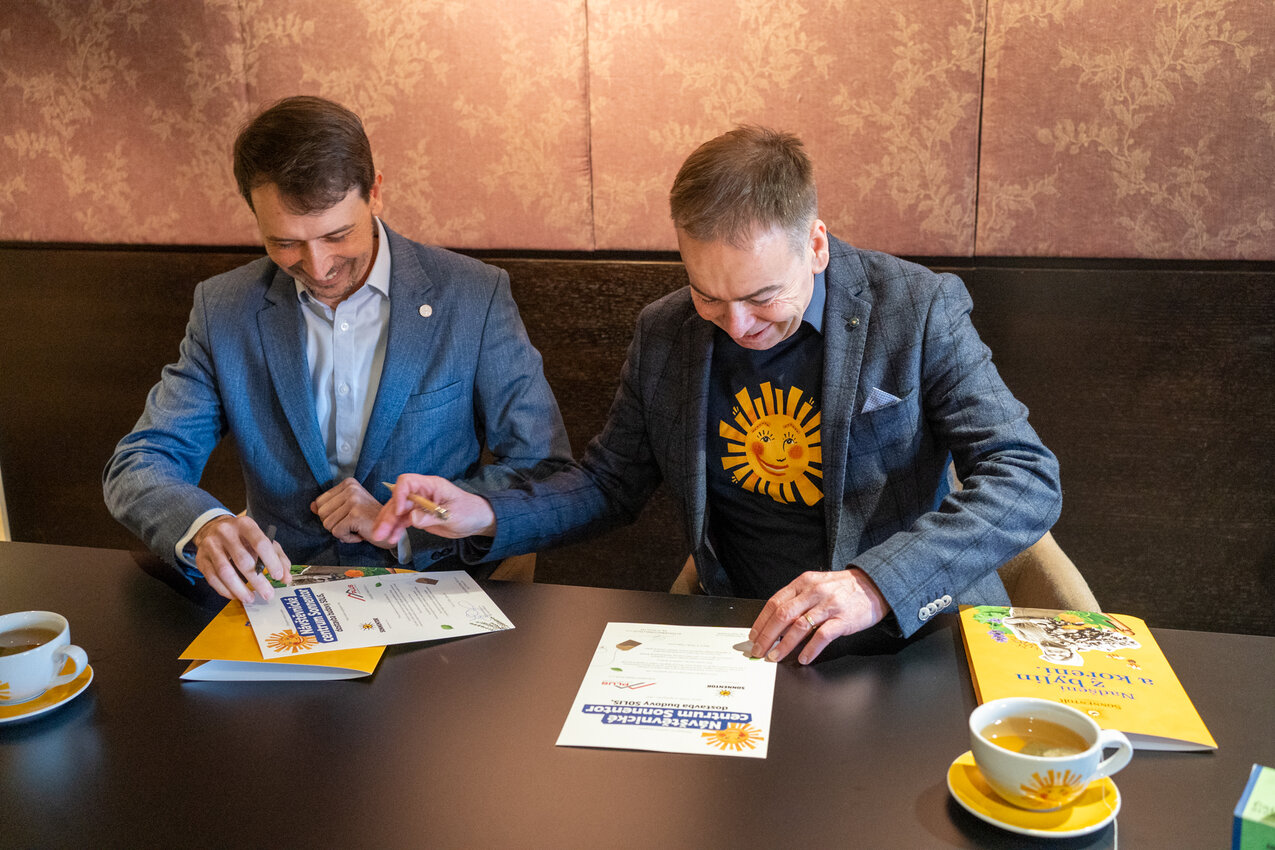 Na dostavbu budovy Solis jsme vypsali výběrové řízení, které začátkem roku 2026 vyhrála lokální společnost STAVEBNÍ FIRMA PLUS s.r.o. z Hodonína. Slavnostní zahájení stavby jsme začali symbolickým podepsáním smlouvy o spolupráci dne 5. 3. 2026 za účasti zástupců obou partnerů.