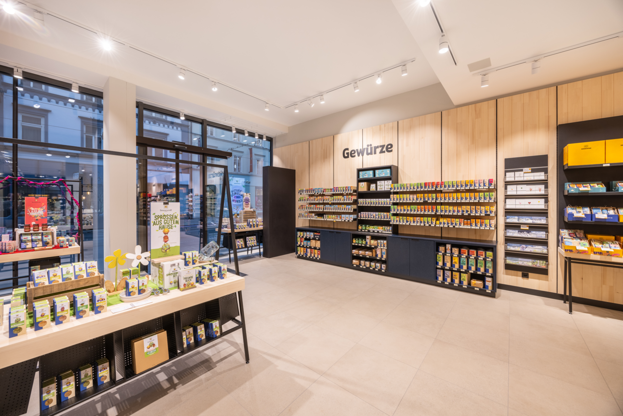 Innen überzeugt das SONNENTOR Geschäft mit einem ansprechenden Ladenbaukonzept – viel Holz und Naturelemente laden zum Verweilen ein. Unser freundliches, serviceorientiertes Team rundet unser sonniges Angebot ab. Mit einer kompetenten Beratung entstehen schöne Geschenkideen für jeden Anlass.